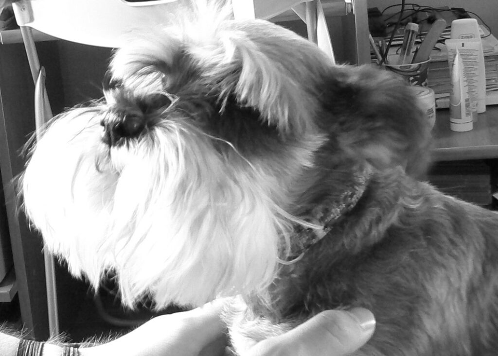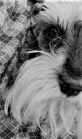 przesłodziak i ogromna siła charakteru w jednym maleńkim ciałku, przyczajony wtulak, ukryty pieszczoch, śmieszek, uroczy błazen, gaduła, piszczałka, syrena alarmowa, uwielbia wodę, mizianie po uszach a ponad wszystko kocha Indię, nie znosi, gdy ktoś ją budzi, wychowała sobie wszystkie psy.